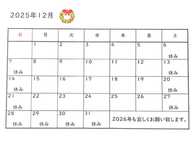 【2025年12月受け入れ予定表】