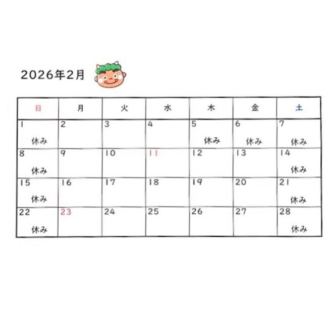 2月のは・るNOAH 受け入れ予定のカレンダーです。